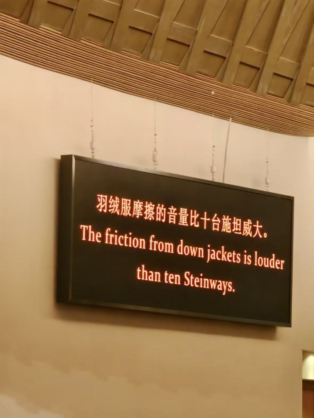 上海交响音乐厅对防止羽绒服发出噪音的幽默提醒