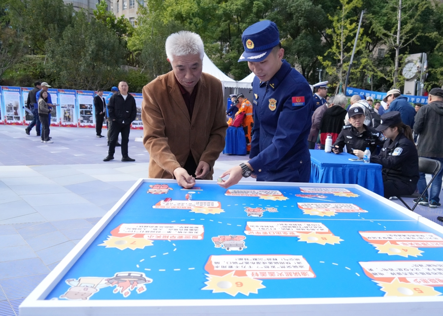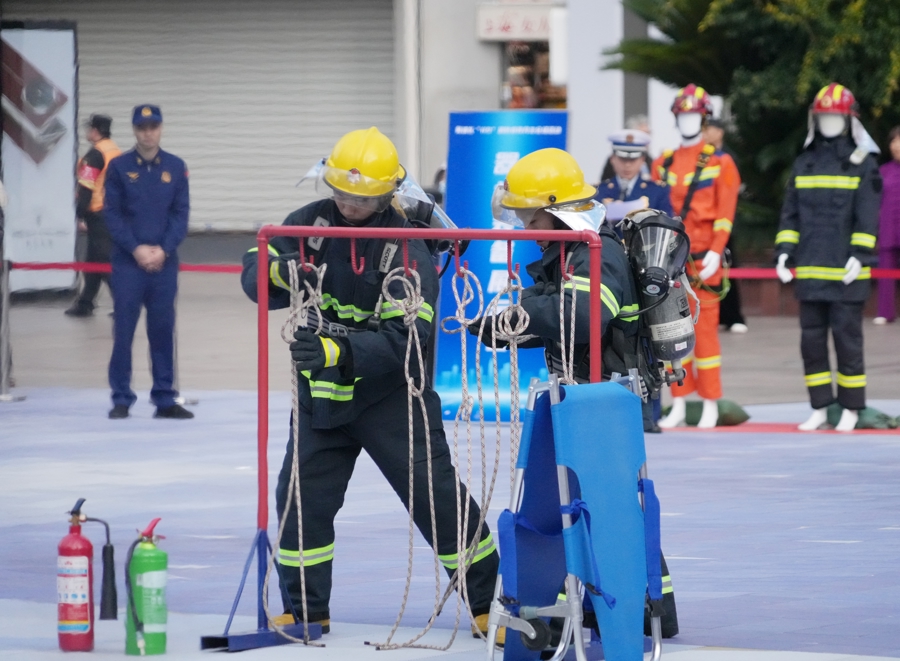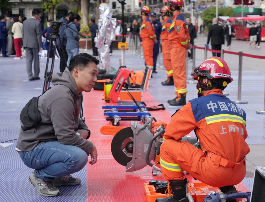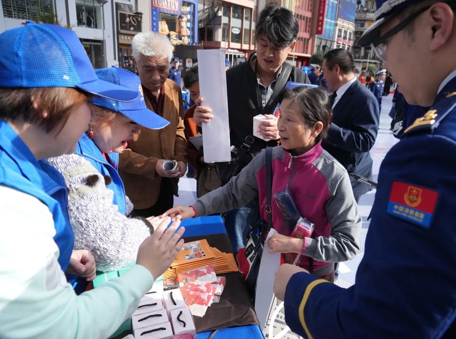 11月11日,黄浦区2025年“119”消防宣传月主会场活动在南京路步行街的世纪广场举行。